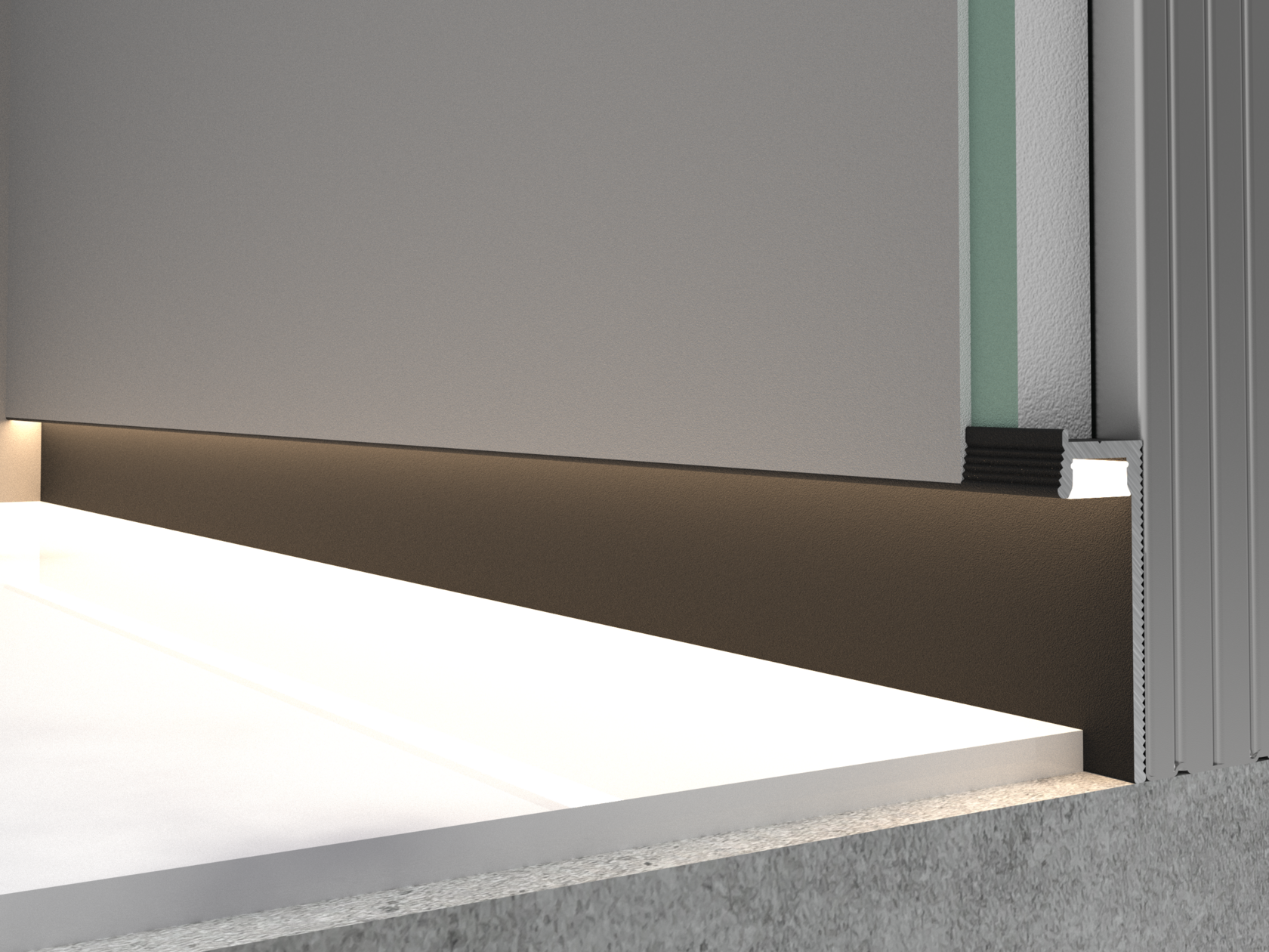 The aluminum shadow skirting board GSB from Skystyle is a modern and aesthetic solution. Visually, this profile creates a shadow gap between the wall and floor covering or between the wall and ceiling, measuring 34-20 mm. It provides a sleek shadow line that looks unique, especially when paired with LED lighting. The shadow skirting board is the perfect choice for those who appreciate minimalism and practicality.